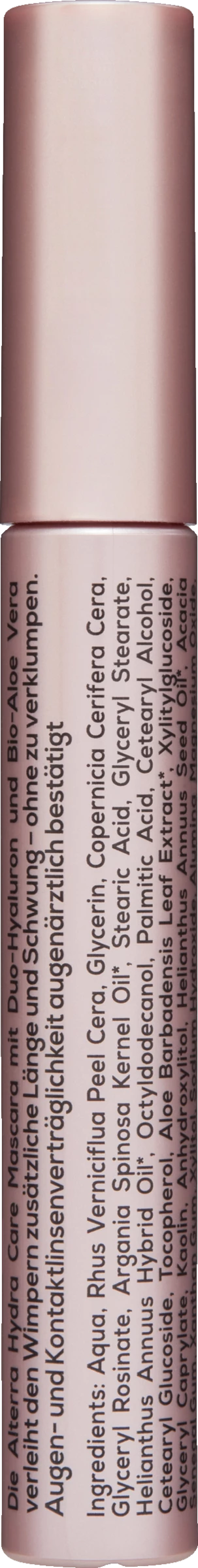 Die Alterra Hydra Care Mascara mit Duo-Hyaluron und Bio-Aloe Vera verleiht den Wimpern zusĂ€tzliche LĂ€nge und Schwung – ohne zu verklumpen.Diese Rezeptur ist zu 100% ohne Mikroplastik laut zertifizierter Naturkosmetik.Das Alterra-Produkt entspricht den strengen Natrue-Kriterien.Augen- und KontaktlinsenvertrĂ€glichkeit dermatologisch bestĂ€tigt.