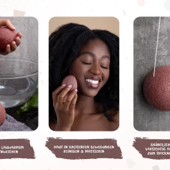 Der Konjac-Schwamm reinigt deine Haut porentief und schonend. Mit einem sanften Peeling-Effekt werden abgestorbene Hautzellen und Unreinheiten wirksam entfernt und die Zellerneuerung angeregt – für ein natürlich frisches Hautbild! Pflegende Zusätze aus wertvoller Tonerde, aktivierendem Grüntee und reinigender Bambuskohle verleihen jedem Schwamm seine einzigartige Farbe.