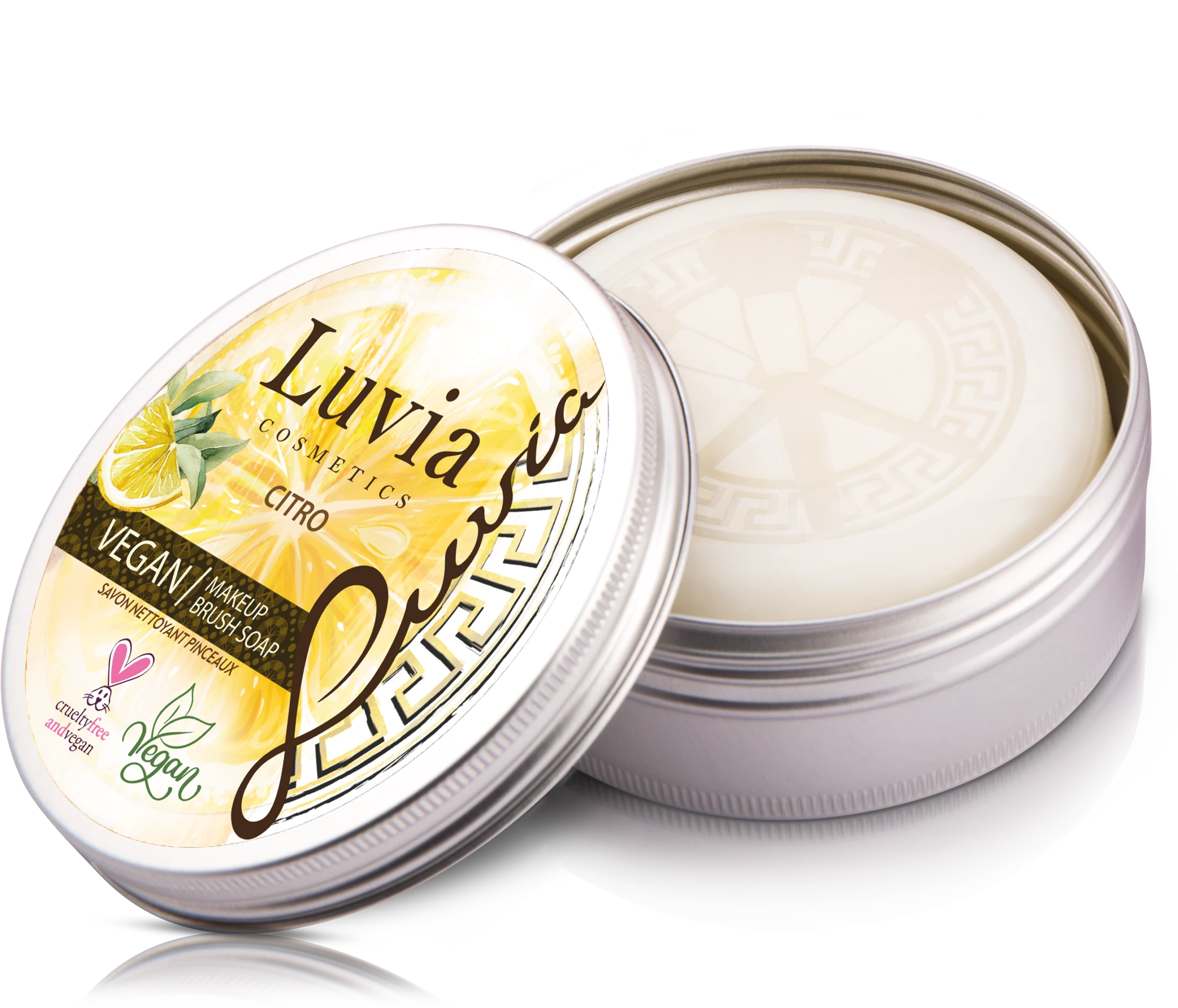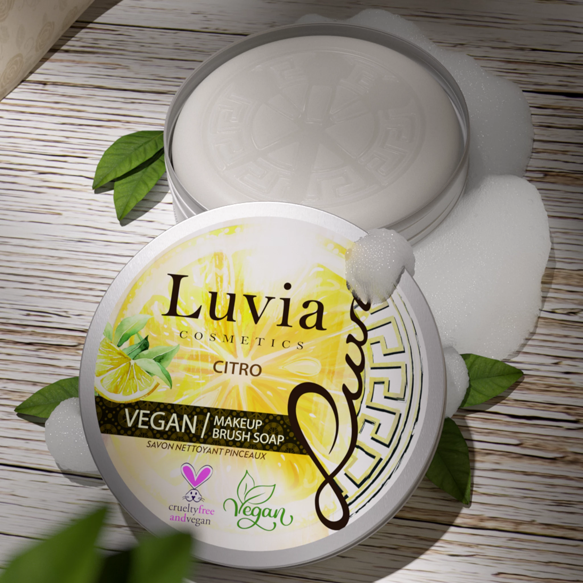 Die hochwertige Pinselseife zur Reinigung, Desinfektion und Pflege verlängert die Haltbarkeit und erfrischt mit einem zarten Zitrusduft. Die ätherischen Öle, mit denen die Seife angereichert ist, wirken rückfettend und sorgen dafür, dass der natürliche Fettgehalt der Pinselhaare, die Elastizität und die Geschmeidigkeit erhalten bleiben. Für perfekt saubere und traumhaft sanfte Make-up Pinsel.
