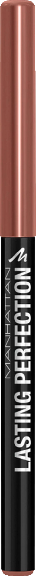 Manhattan Lasting Perfection Lipliner. Präzisions Lipliner in vielen verschiedenen Nuancen, passend zu jedem Hauttyp & jeder Situation. Ob als konturierender Farbstift oder Versiegelungvon Farbe & Gloss, dieser langanhaltende Liner ist vielseitig einsetzbar und überzeugt durch trendige, intensive Farbe und angenehmes Trage-gefühl. Die Lippen wirken optisch aufgefüllt werden zum effektvollen Hingucker!