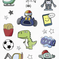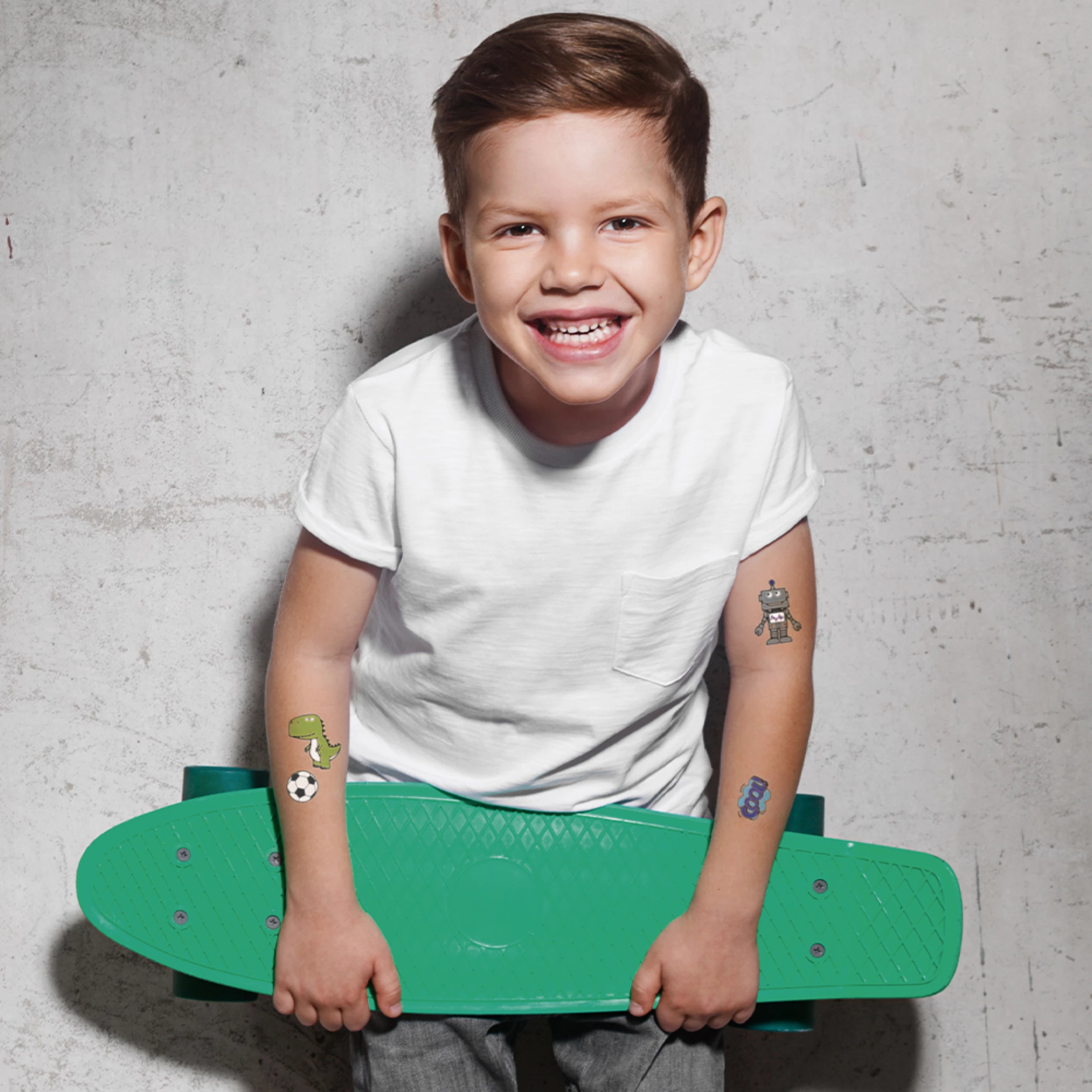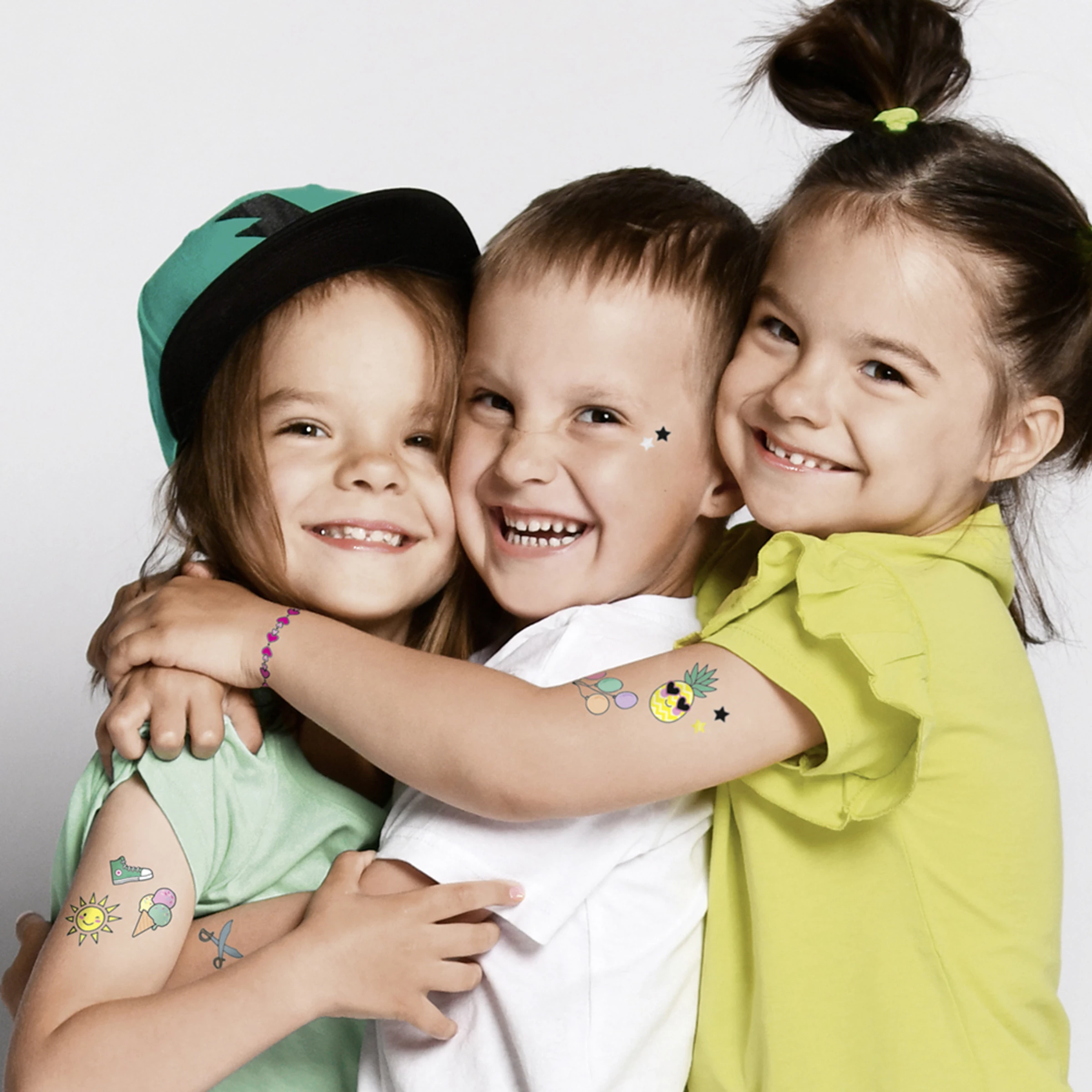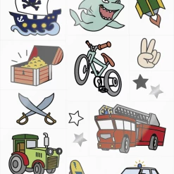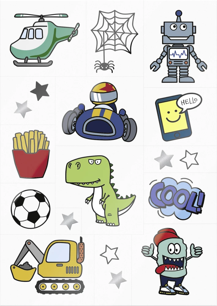 Unbedenklicher Tattoo-SpaĂ fĂŒr Kinder ab 3 Jahren. Kann einfach angebracht und leicht wieder entfernt werden.